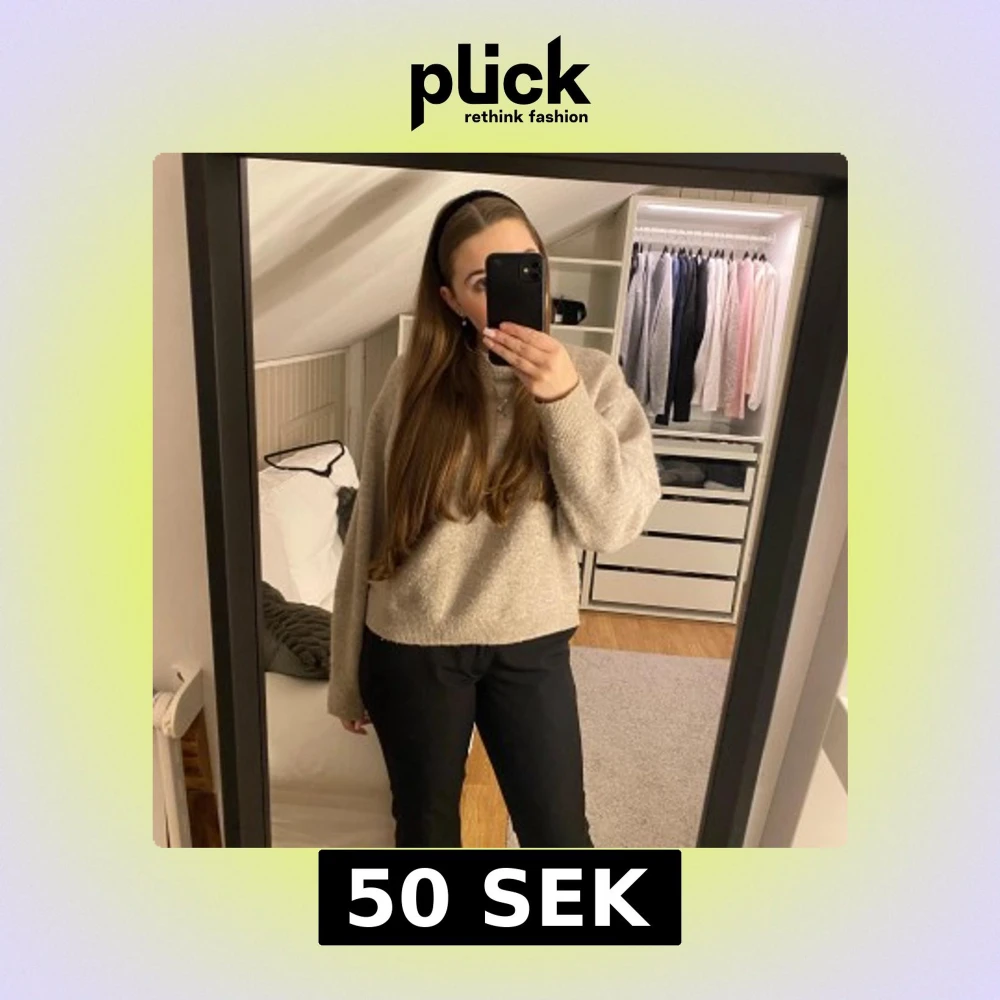 Säljer en mysig beige stickad tröja med rund hals och långa ärmar🥰 Öppen för pris förslag❣️