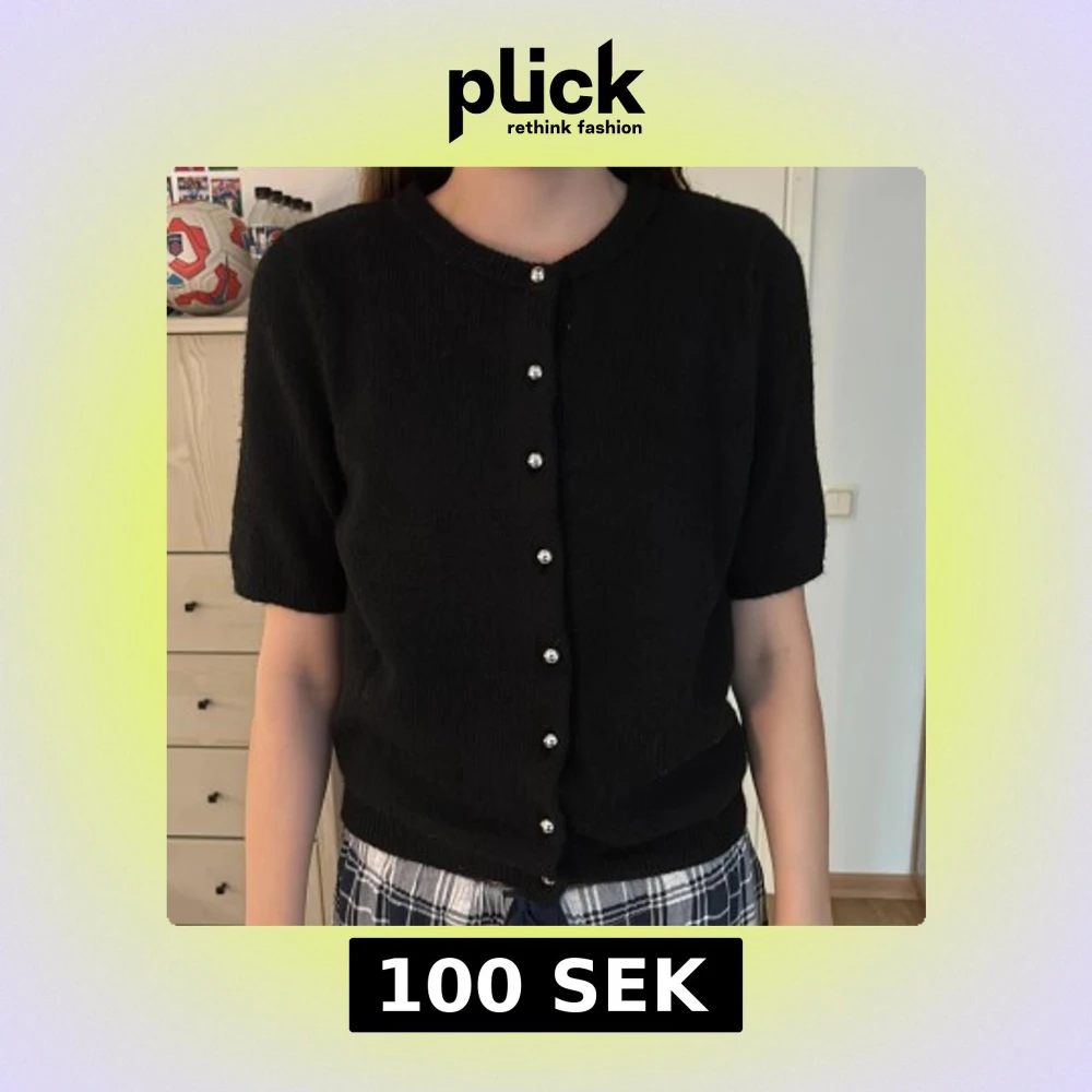 Svart stickad kofta från H&M i storlek S. Kortärmad modell med rund halsringning och snygga pärlknappar framtill. Mjuk och skön, perfekt att slänga över en topp eller klänning. Enkel och stilren design som funkar till det mesta. Använd ett fåtal gånger.