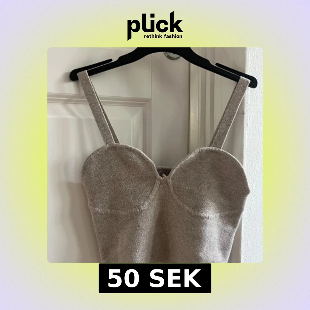 Superfin beige stickad korsettopp från H&M i storlek S. Toppen har breda axelband och markerade kupor för en snygg siluett. Mjuk och stretchig stickad kvalitet som känns skön mot huden. Perfekt att styla med jeans eller kjol för en trendig look.