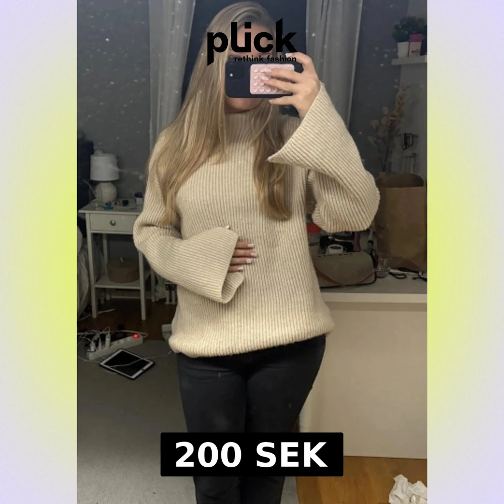 Säljer denna beiga stickade tröja med krage från H&M! Den är i storlek S men skulle säga att den är stor i storleken. Hör av er ni har några frågor!!