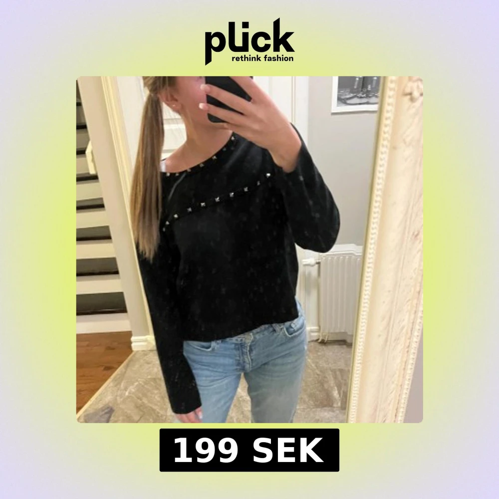 Svart stickad tröja med nitar,är i storlek L men passar mig som bär S,Xs💕