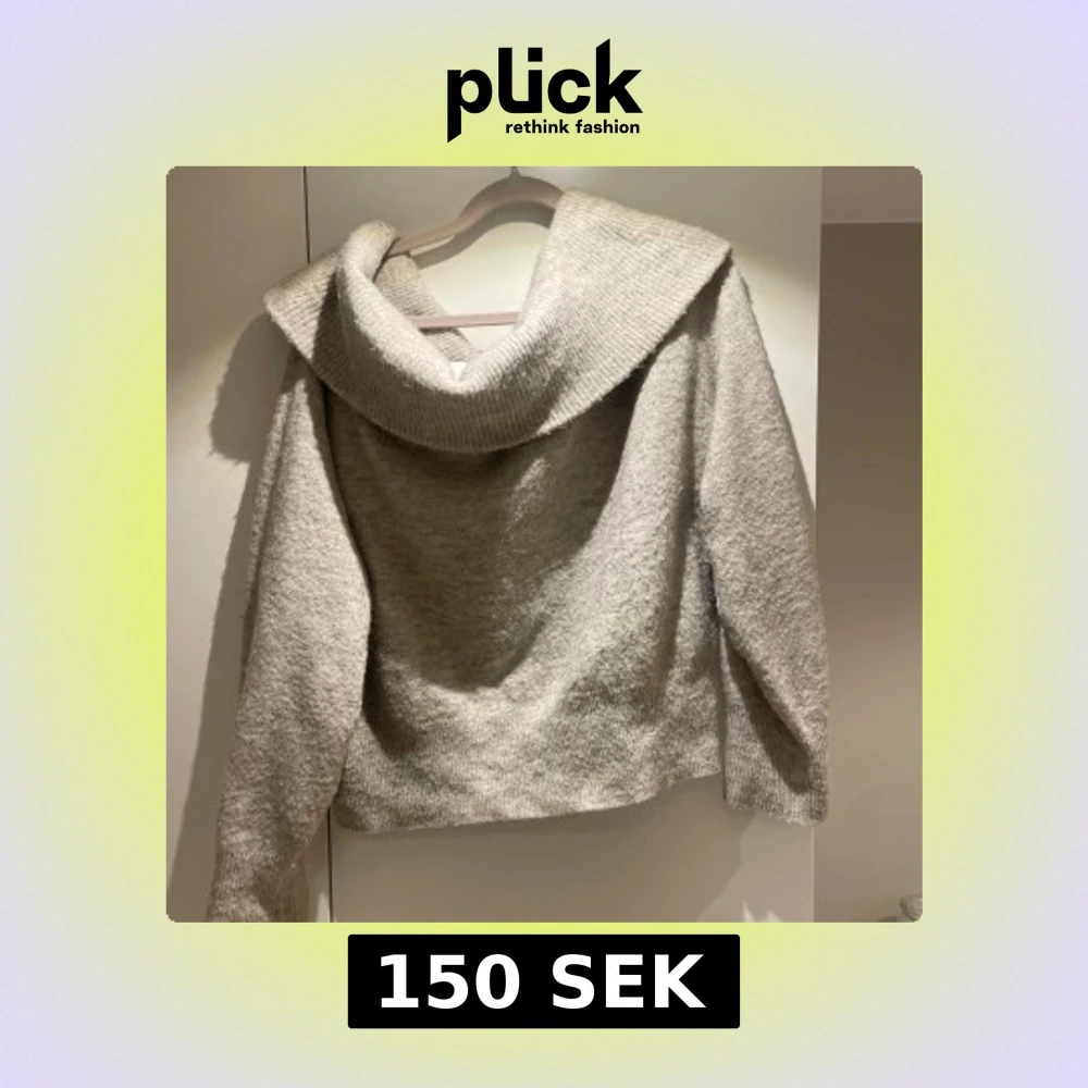 Mysig beige stickad tröja från H&M med en bred krage. Perfekt för kyliga dagar med sin mjuka och varma känsla. Tröjan har långa ärmar och en avslappnad passform.