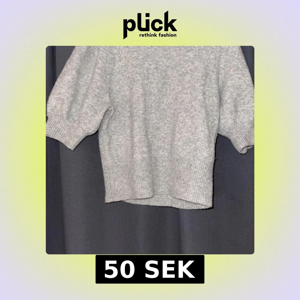 Mysig grå stickad tröja med puffiga kortärmar och ribbade muddar. Tröjan har en rund halsringning och är i en ljusgrå ton som passar perfekt till jeans eller kjol. Materialet är mjukt och känns skönt mot huden, perfekt för kyliga dagar.💗