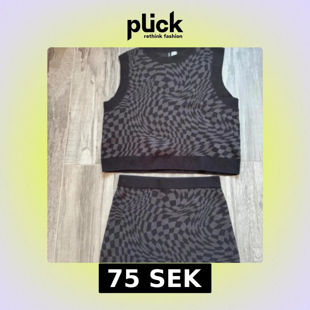 Cool kortkjol från H&M i svart och grått med ett hypnotiskt rutigt mönster. Kjolen har en ribbad midja och är gjord i mjukt stickat material som känns skönt mot huden. Perfekt att matcha med denna crop väst för en trendig look. Kjolen är stl S och västen stl M.