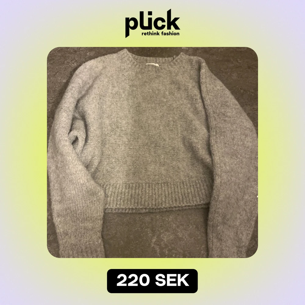 Mysig grå stickad tröja som är lite croppad. Perfekt för kyliga dagar med sin varma och bekväma passform. Tröjan har långa ärmar och ribbade kanter, passar till allt💕💕