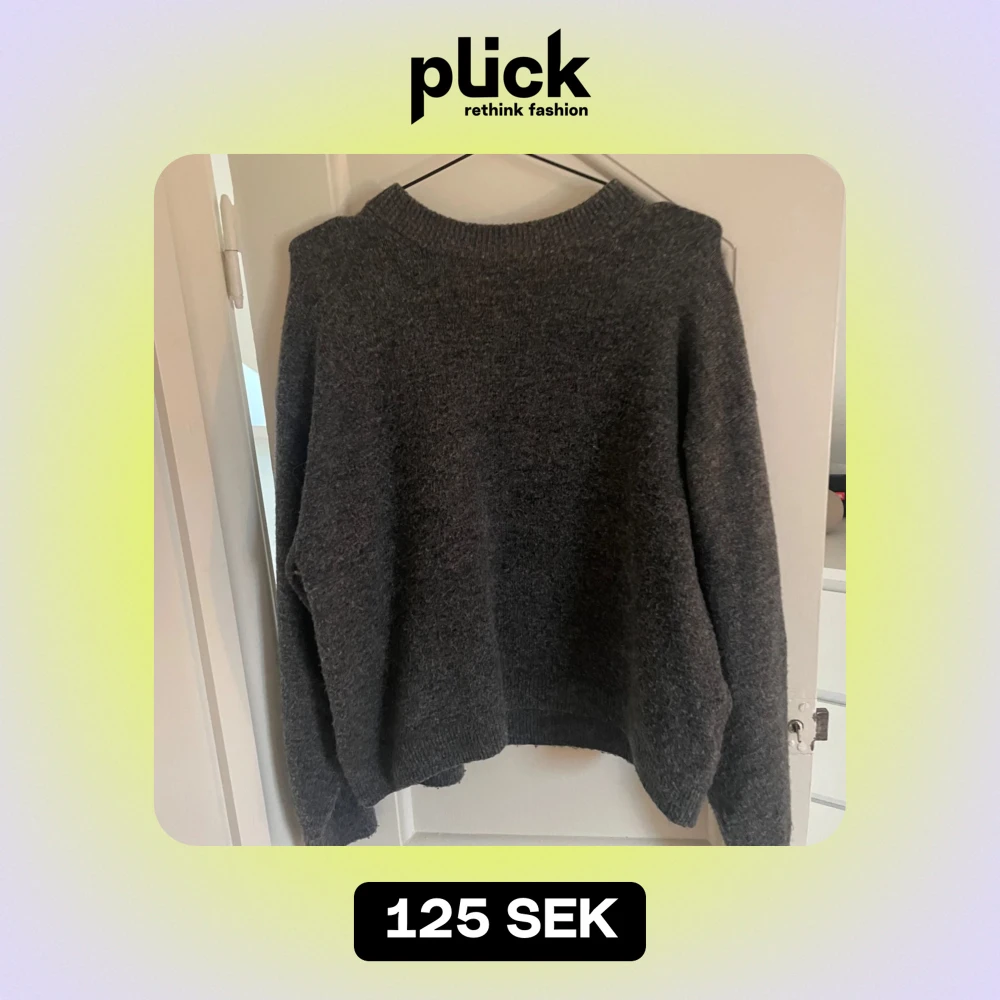 Mysig grå stickad tröja från H&M i storlek S. Perfekt för kyliga dagar med sin mjuka och varma känsla. Tröjan har en normal passform och långa ärmar, vilket gör den idealisk för både höst och vinter. Ett måste i garderoben för en stilren och bekväm look!