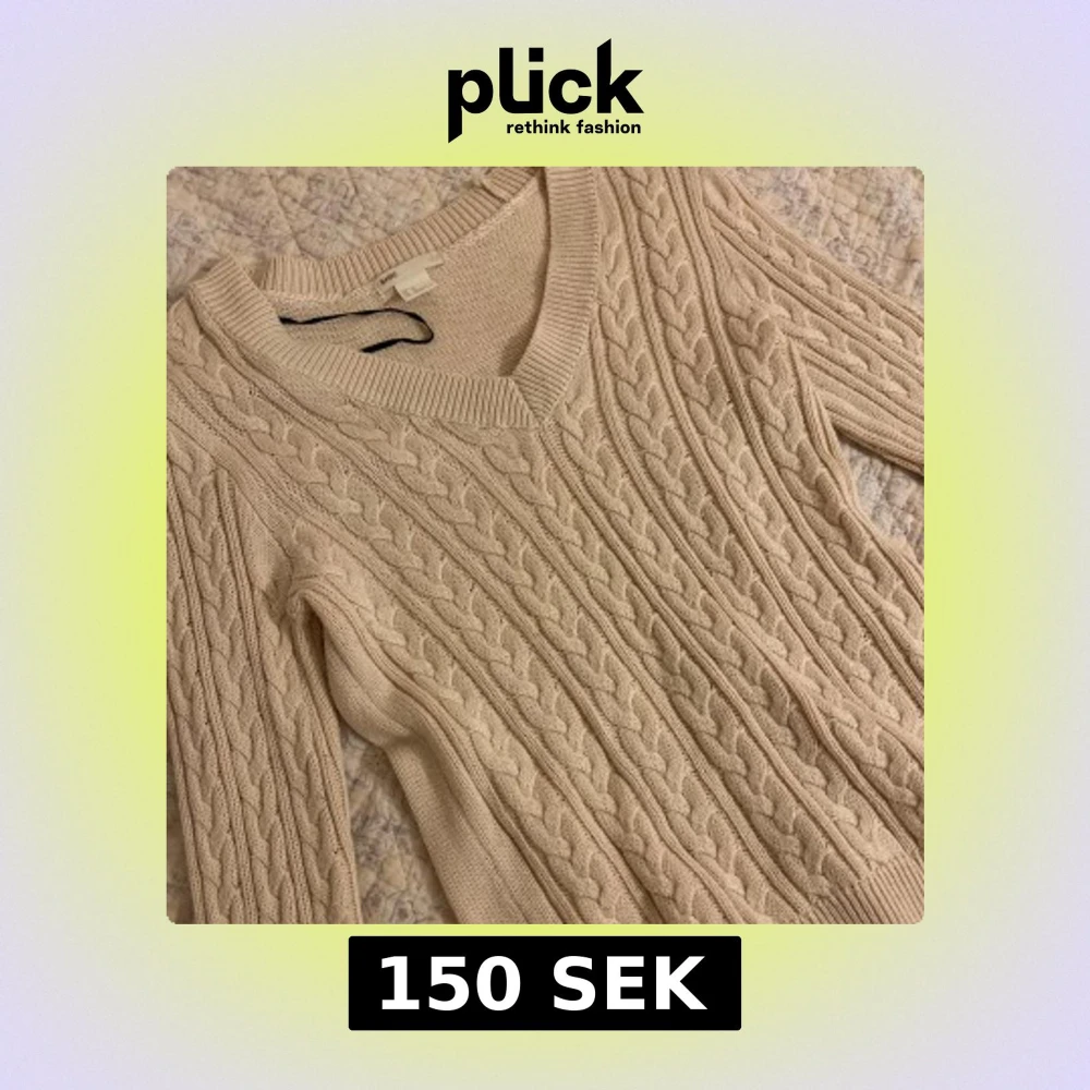 Kabelstickad tröja från H&M i beige med v-ringning och långa ärmar. Snyggt flätmönster över hela tröjan och bred ribbad kant vid halsen. Perfekt för lager-på-lager under hösten och vintern.