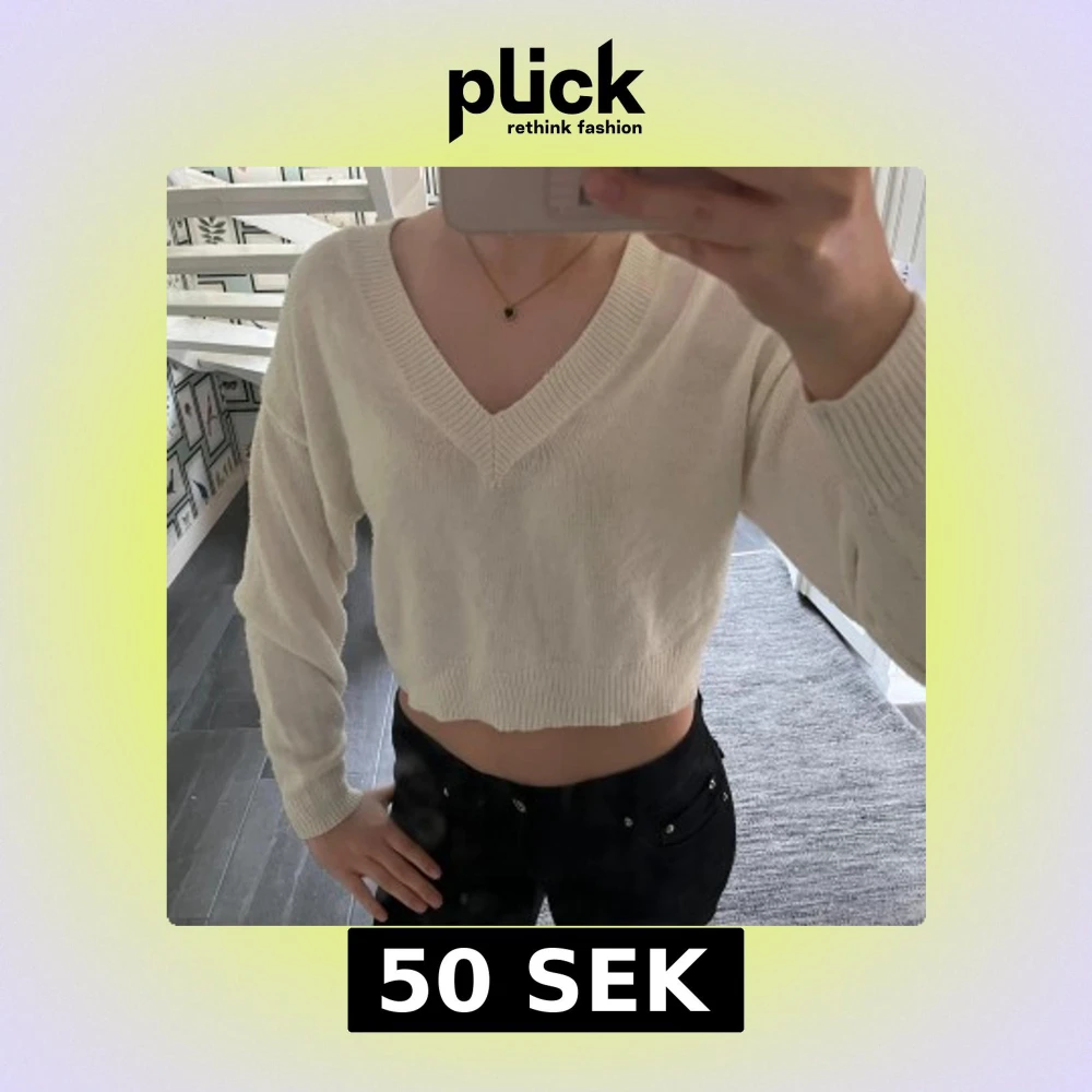 Vit stickad tröja med v-ringning och långa ärmar💕 Croppad och bekväm och sitter superfint🤗