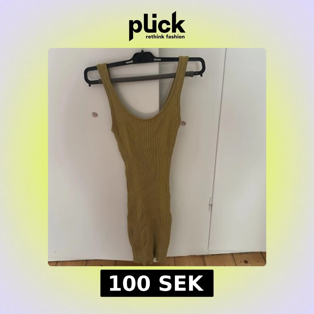 Supersnygg ribbad grön klänning från H&M i storlek XS. Den är ärmlös med breda axelband och har en kroppsnära passform. Klänningen är stickad i ett stretchigt material och har en enkel, stilren look som passar perfekt till sommaren.