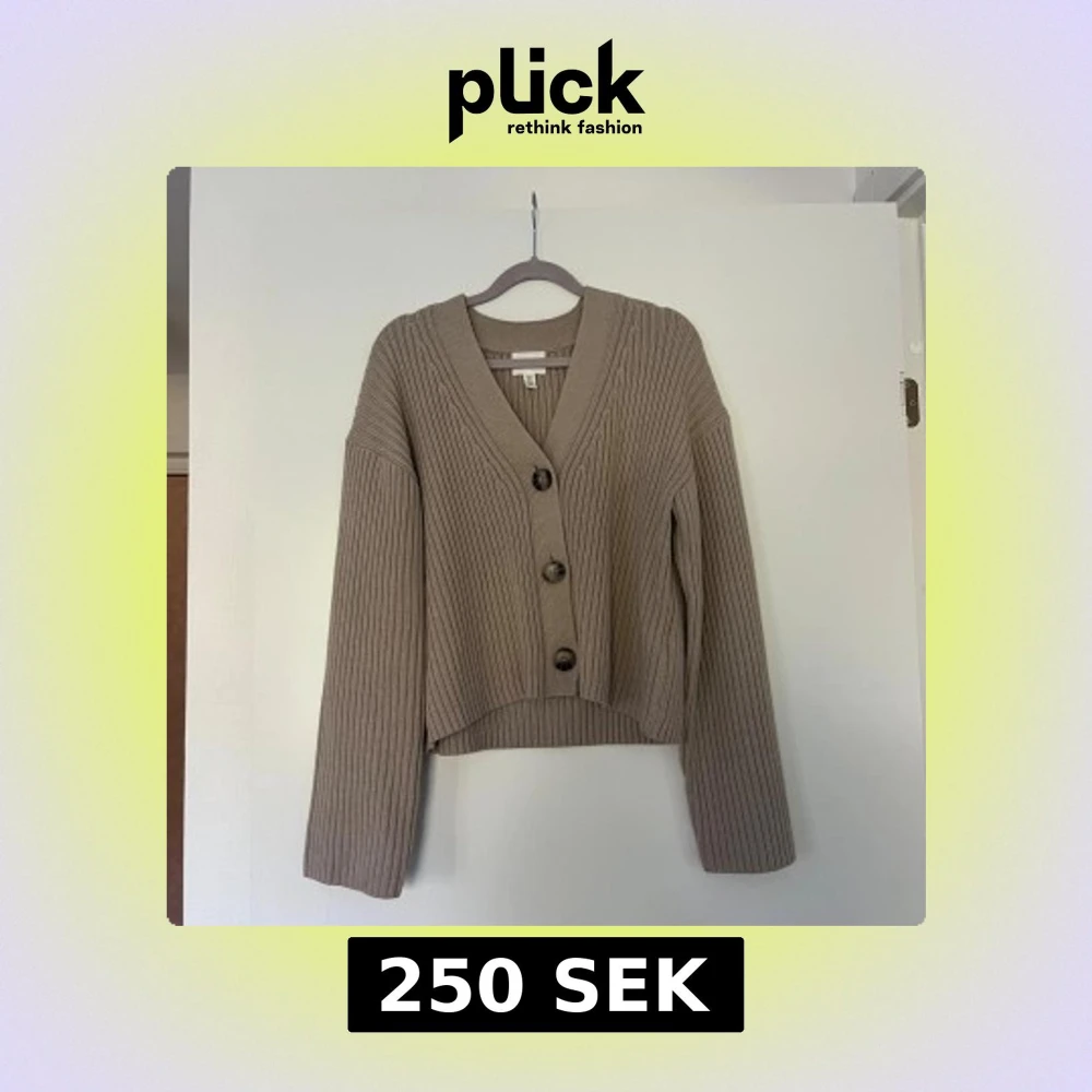 Beige stickad tröja med knappar från HM. Xs men stor i storleken. Endast använd fåtal gånger. Inga anmärkningar. Perfekt till hösten!!