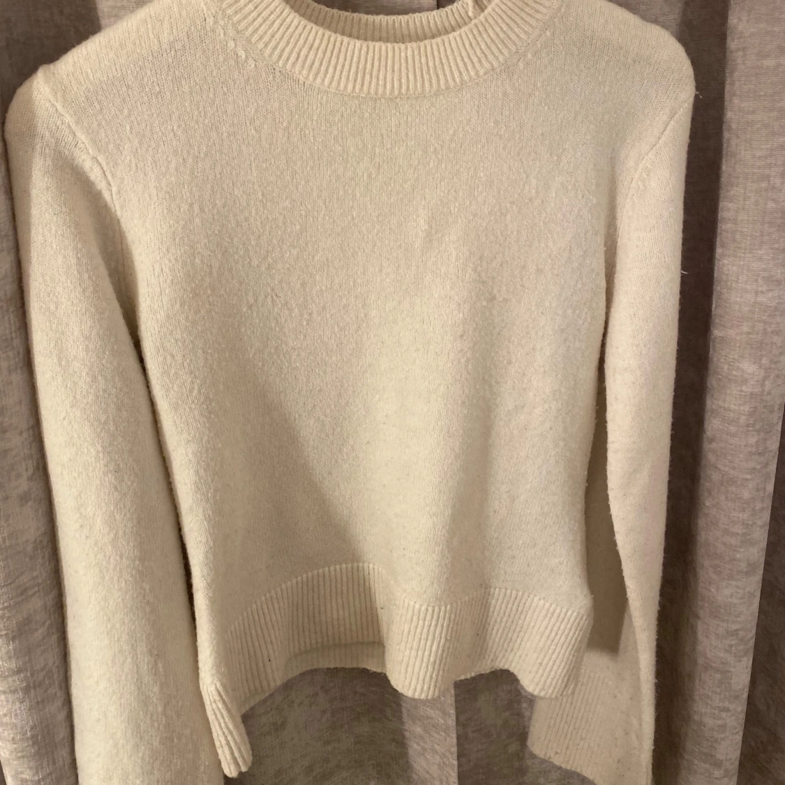 super mysig vit stickad tröja ifrån hm, använd några gånger men fortfarande fint skick, tröjan har stora ärmar