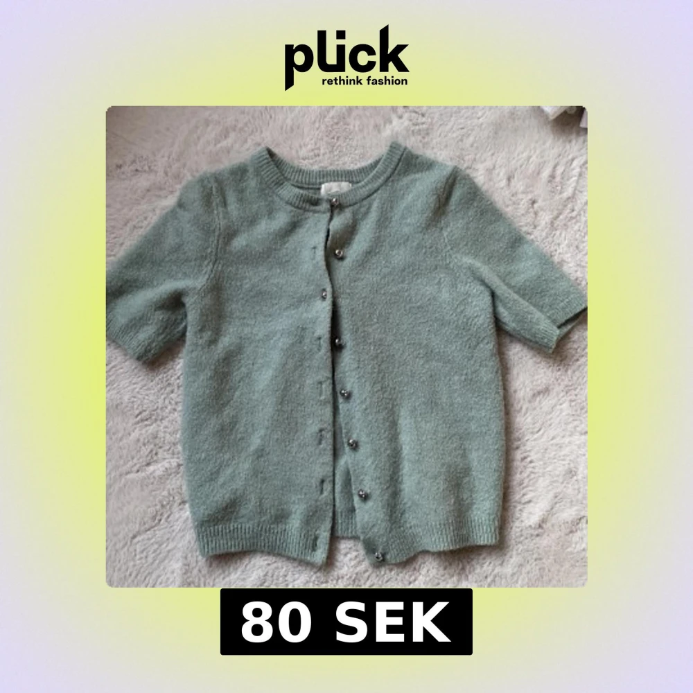 Superfin mintgrön kofta från H&M i storlek XS. Koftan har korta ärmar, rund hals och snygga silvriga knappar framtill. Materialet är mjukt och stickat, perfekt för lager-på-lager. Passformen är normal och koftan har ribbade muddar vid ärmslut och nederkant.