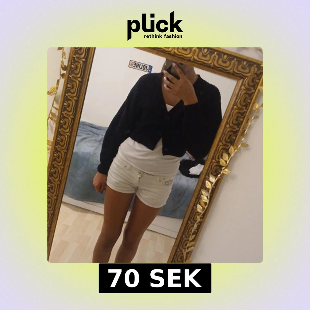 En jättesöt svart stickad kofta med tre knappar framtill. Väldigt simpel och passar till allt. Den används aldrig och därför säljer jag den. 💖