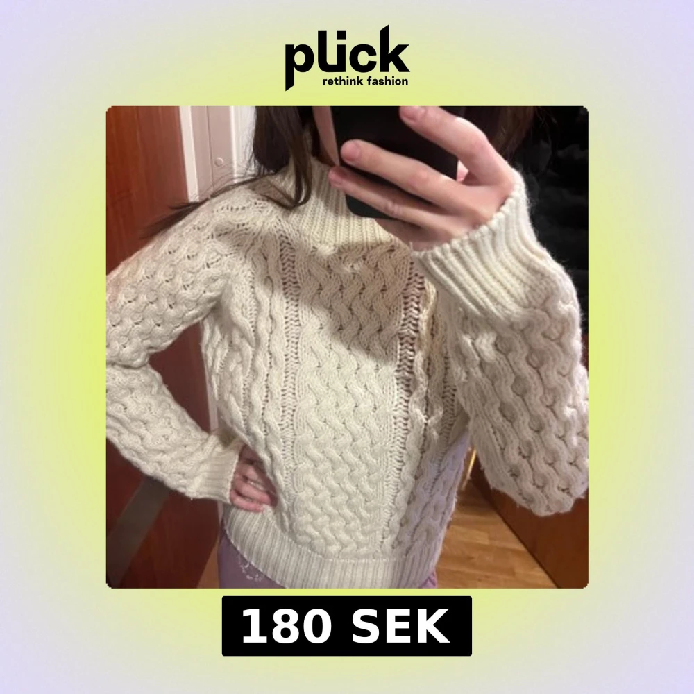 Säljer en mysig vit stickad tröja från H&M i ullblandning. Tröjan har ett klassiskt flätmönster och långa ärmar med ribbade muddar. Perfekt för kyliga dagar! 🧶