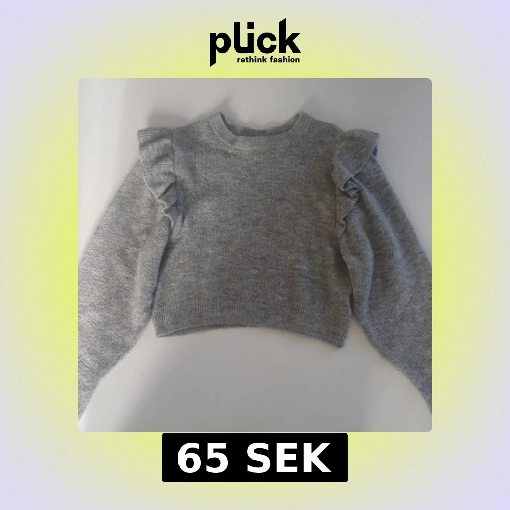 Säljer en snygg grå croppad tröja från hm med volangdetaljer på axlarna. Tröjan har långa ärmar och är perfekt för en trendig look. Har en jätte fin passform💕