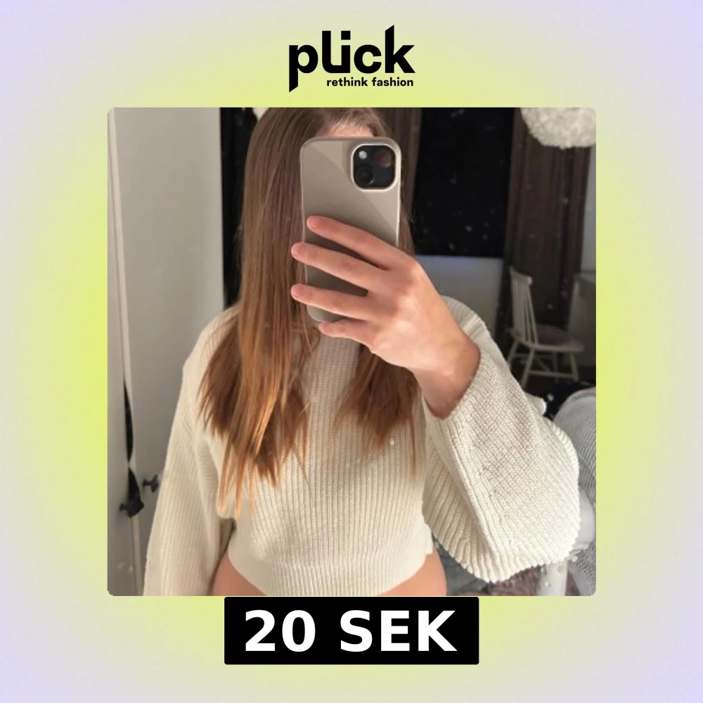 Säljer en vit croppad stickad tröja med breda ärmar och ribbad struktur. Från hm