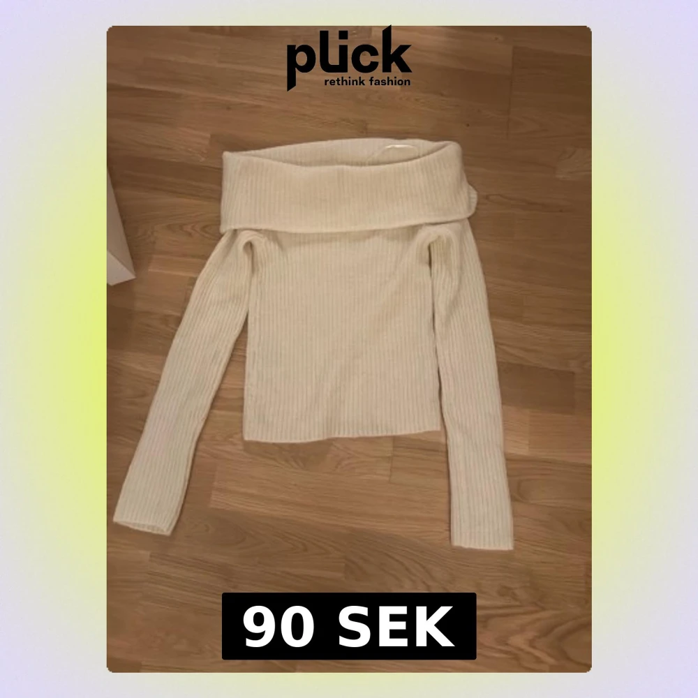 Superfin offshoulder tröja från H&M i ribbstickad, mjuk och krämvit kvalitet. Långärmad modell med bred krage som vilar snyggt över axlarna. Perfekt för dig som gillar en stilren och trendig look.