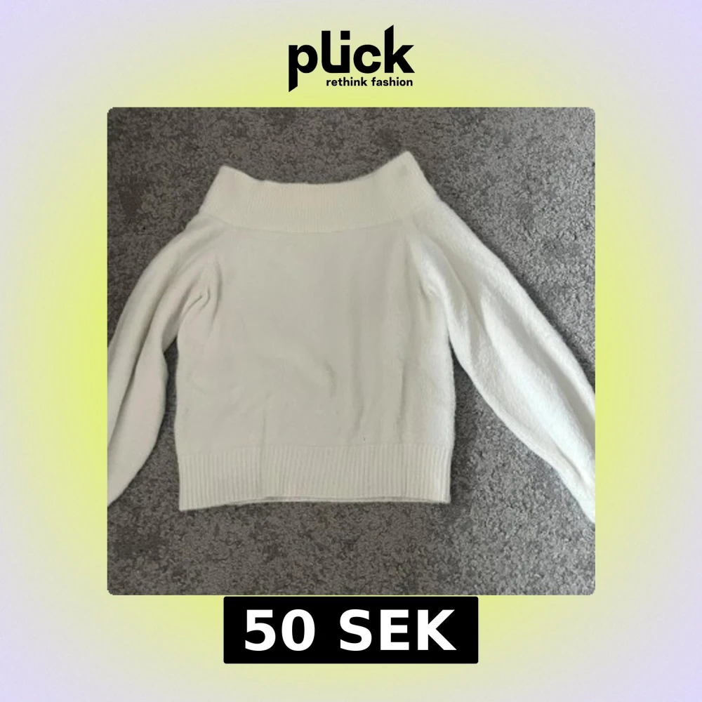 Säljer en mysig vit stickad tröja med off shoulder. Tröjan har långa ärmar och ribbade kanter vid ärmslut och nederkant. Perfekt för kyliga dagar! Från h&m i storlek xs