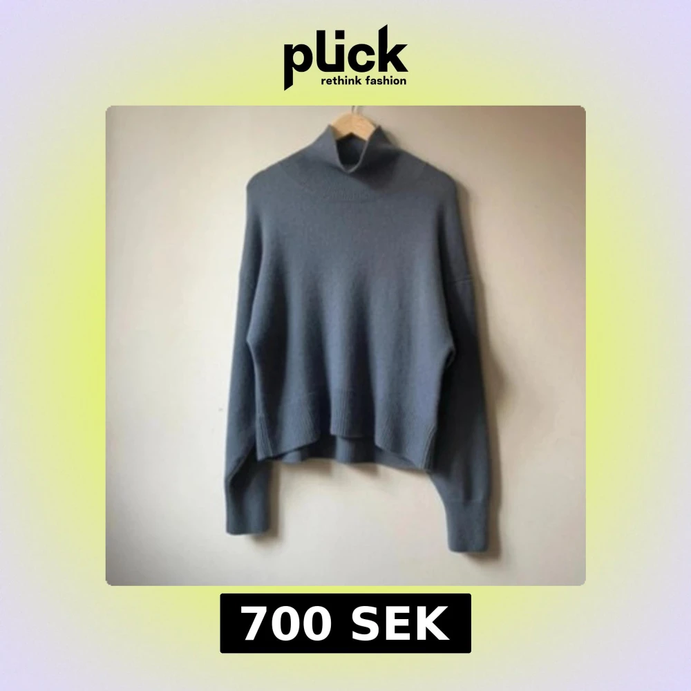 En super fin höghalsad/polo stickad tröja i cashmere och är så mjuk och skön. Tröjan är i en xs men är oversized så den passar även en s och möjligtvis en m! Beror ju på hur man vill att den ska sitta!