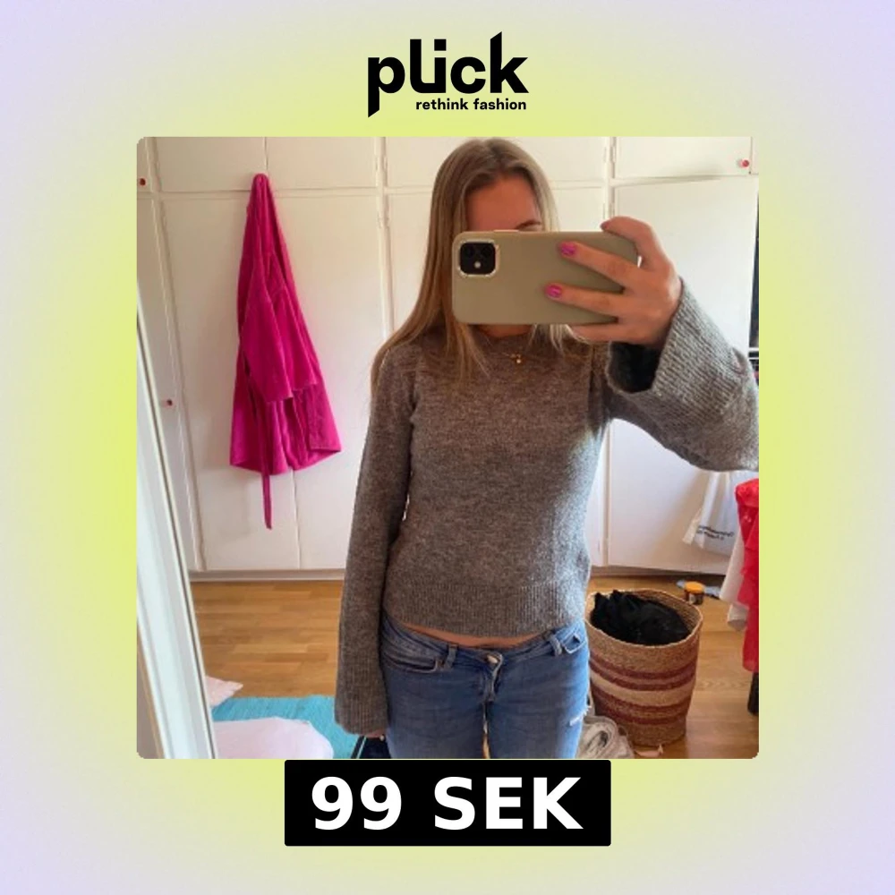 Mysig grå stickad tröja med rund hals och långa ärmar som går ut lite. Den är köpt på H&M. ❤️❤️💞