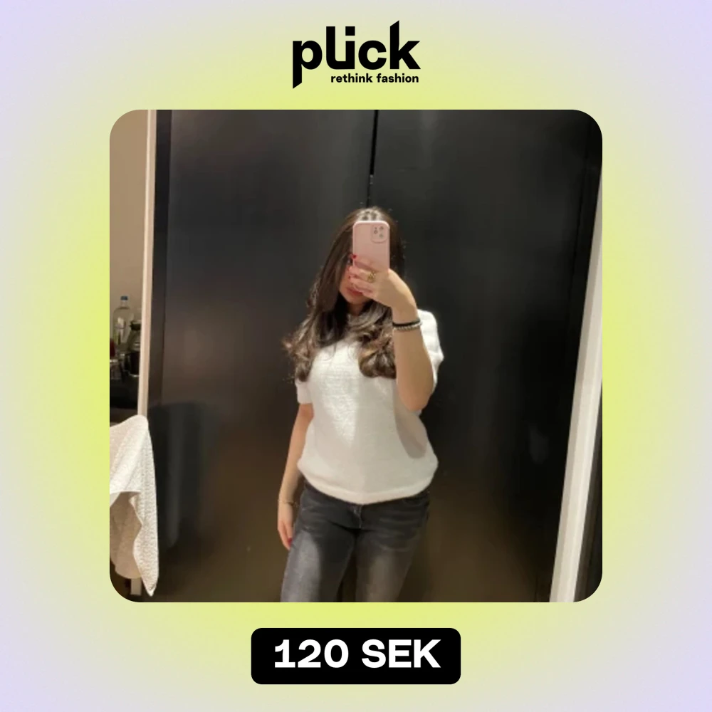 Vit stickad kortärmad tröja
