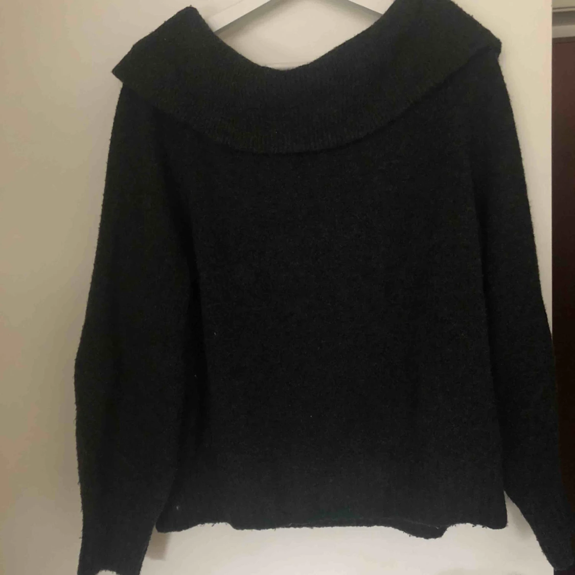 Snygg stickad tröja! Mörkgrå. Axellös.
