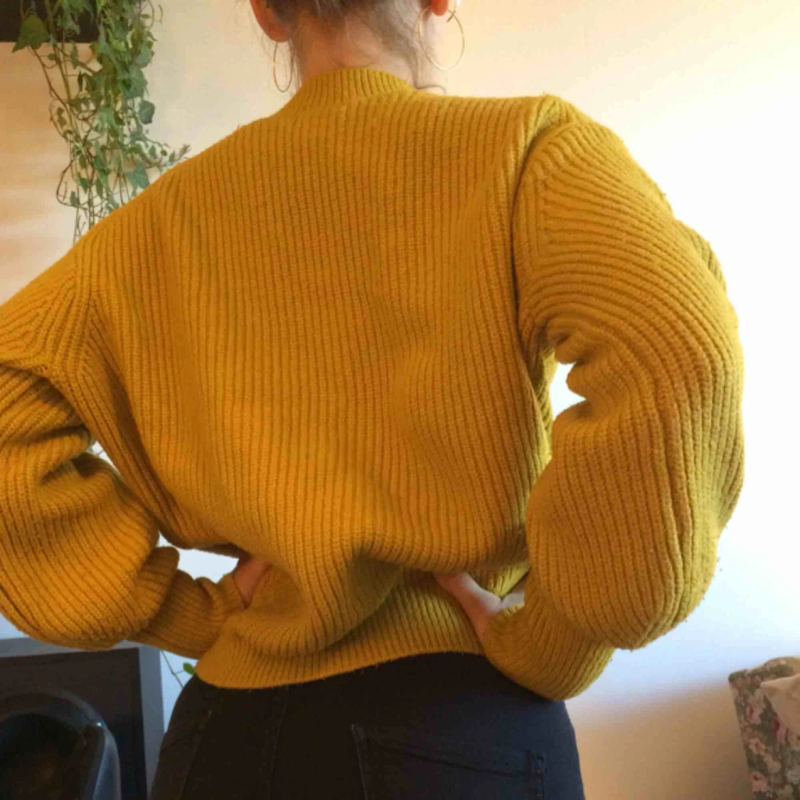Superskön stickad gul tröja. Väl använd men tjock och gosig. Frakt ingår i priset!