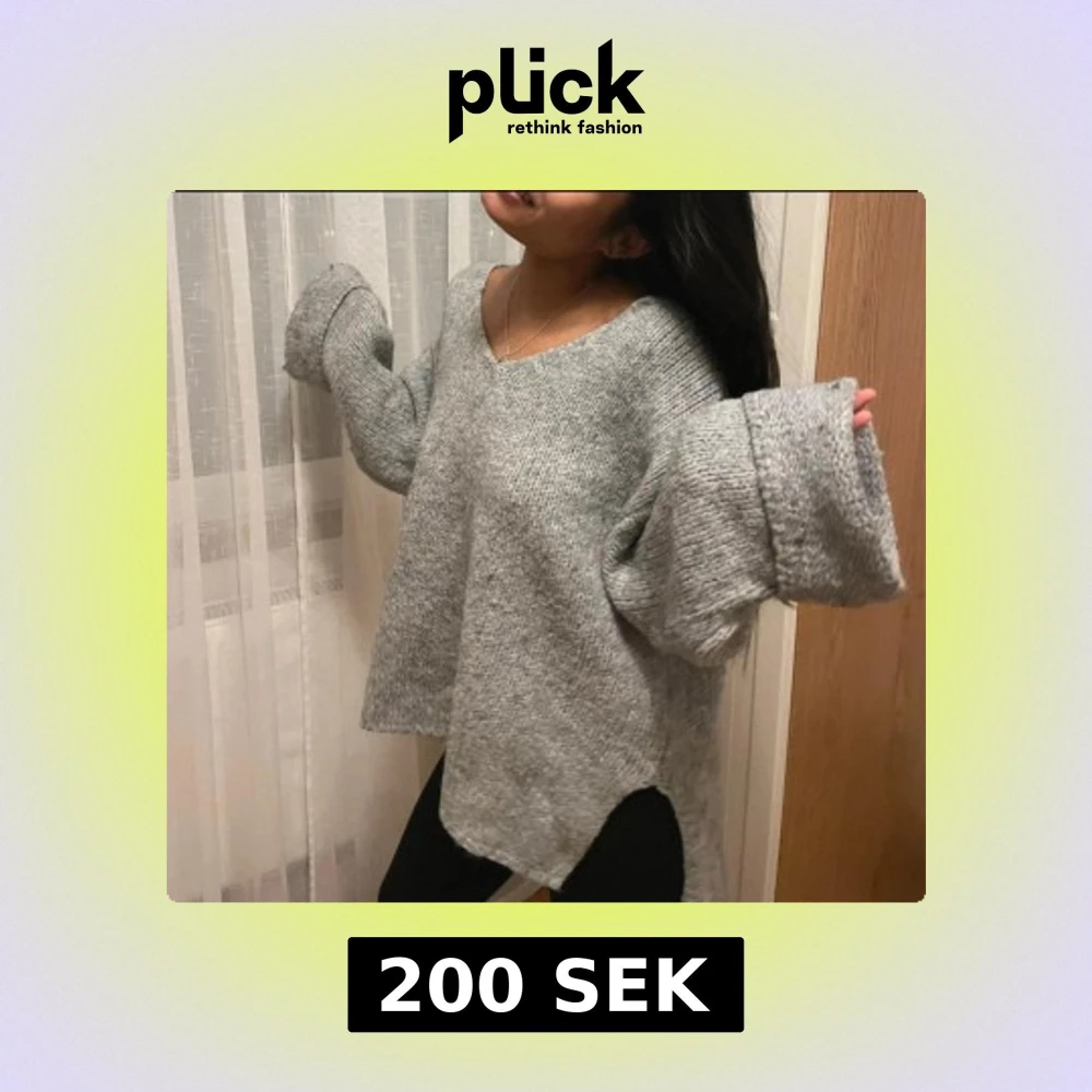 Supermysig grå stickad tröja med v-ringad hals och riktigt breda, långa ärmar. Storlek s men sitter oversized