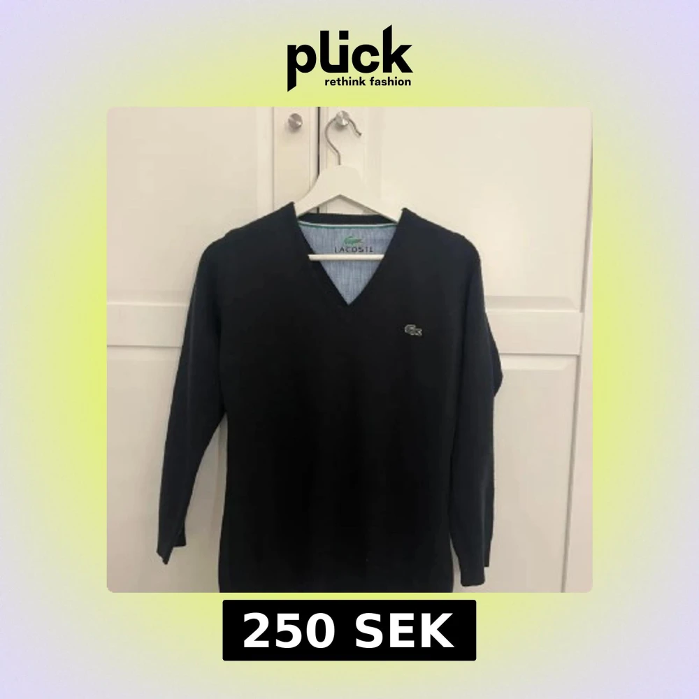 Svart v-ringad tröja från Lacoste med klassisk krokodillogga på bröstet. Tröjan har lång ärm och är gjord i mjukt stickat material som känns skönt mot huden. Perfekt för dig som gillar stilrena och enkla plagg med en touch av sportig vibe.