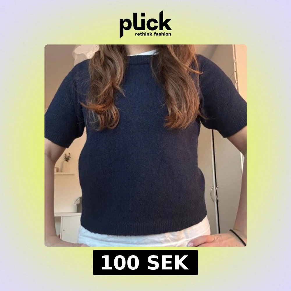 Supersnygg, stilren marinblå stickad T-shirt från Nelly i storleken XS, passar även S. Använd några gånger men inga defekter.