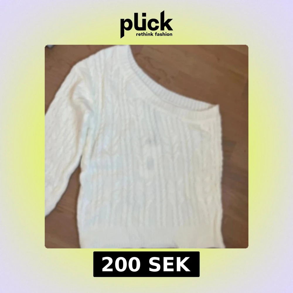 Säljer en vit stickad tröja med snygg offshoulder-skärning. Tröjan har ett klassiskt flätmönster och bred ribbad kant vid halsen. Perfekt för dig som vill ha en mysig men ändå trendig look under kyliga dagar.