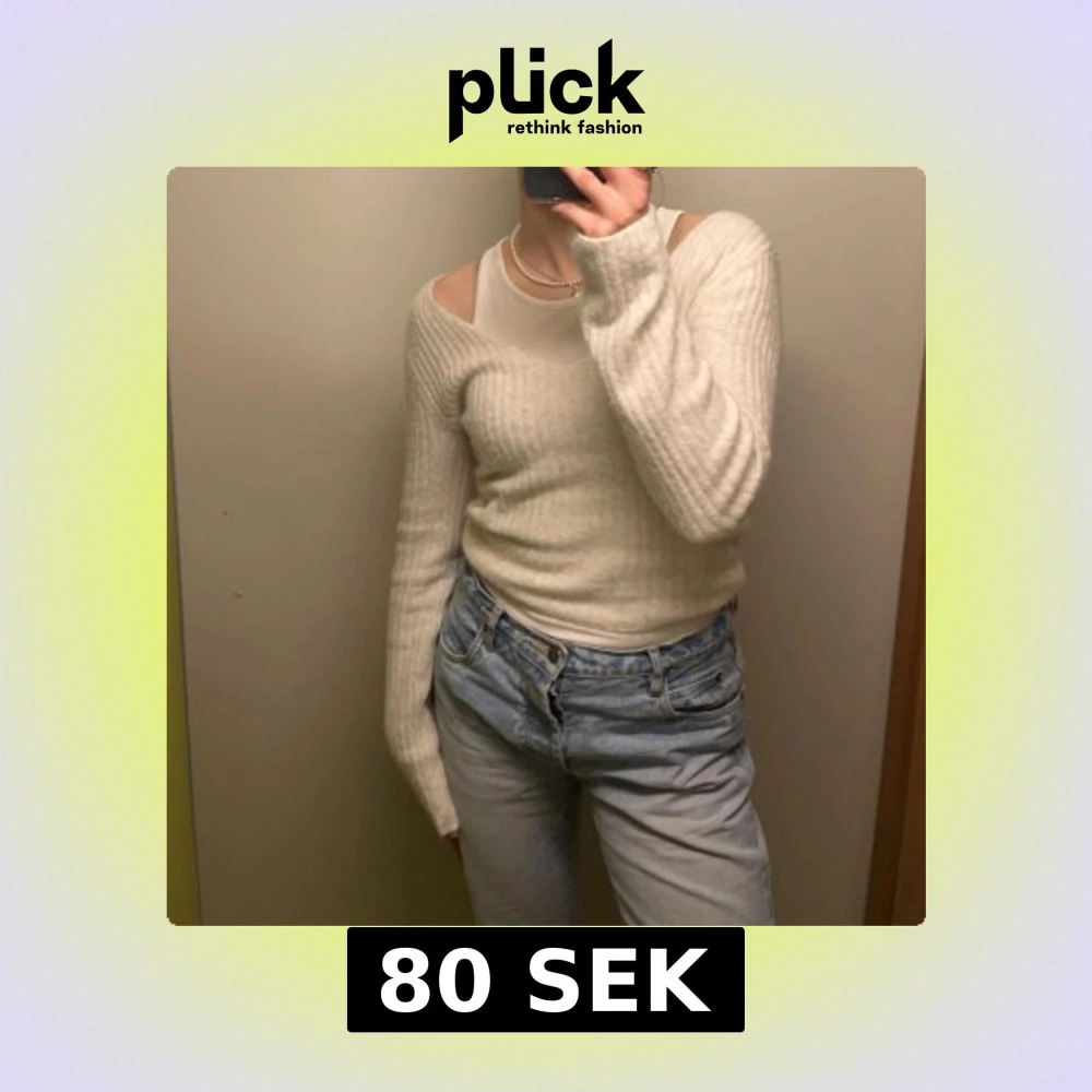 Vit ribbad tröja med lång ärm och v-ringad hals från Weekday - perfekt för lager-på-lager-stil och super varm och mjuk! Köpt här på Plick och då i nyskick och sparsamt använd av mig! (Andra bilden är lånad för att få en bättre blick på tröjan)