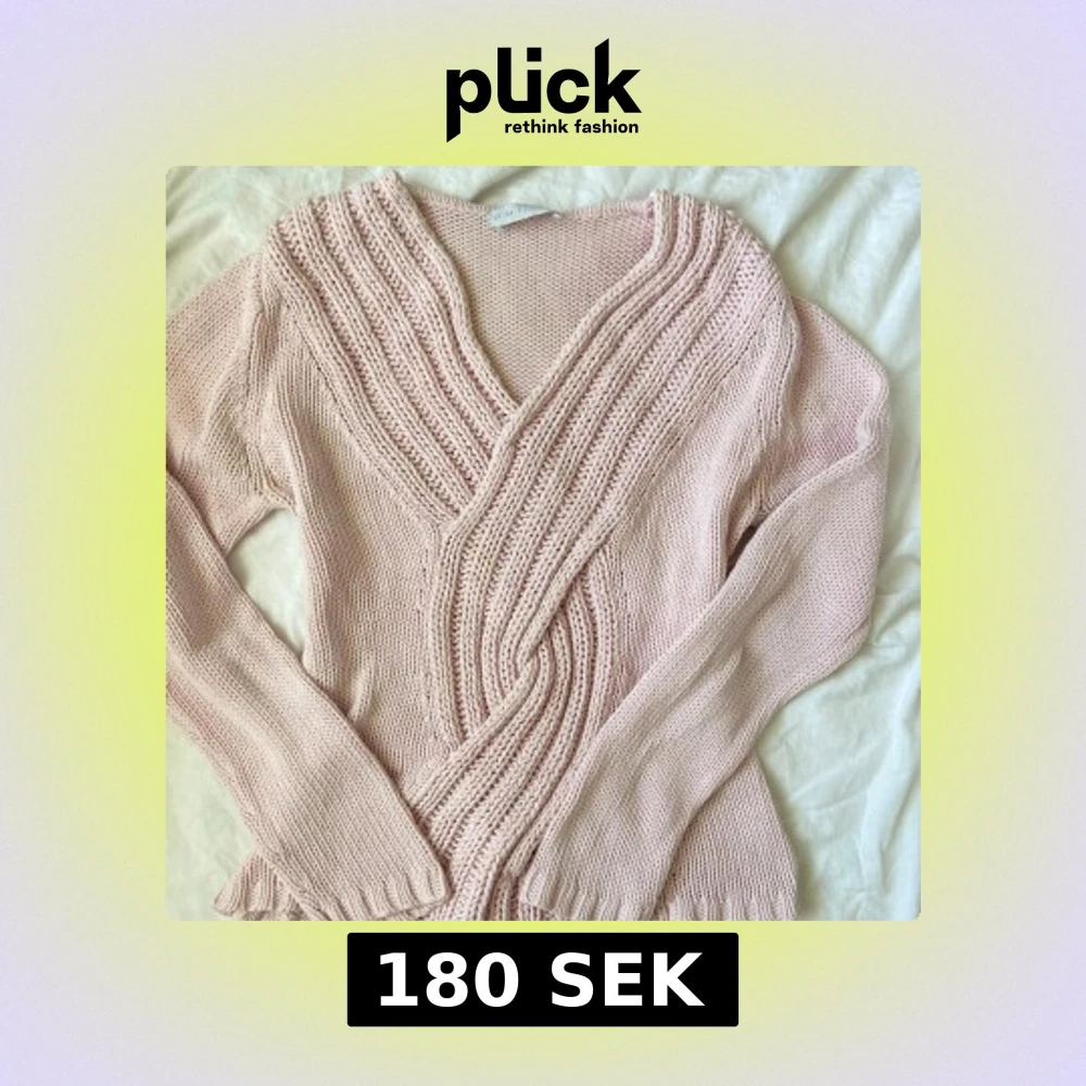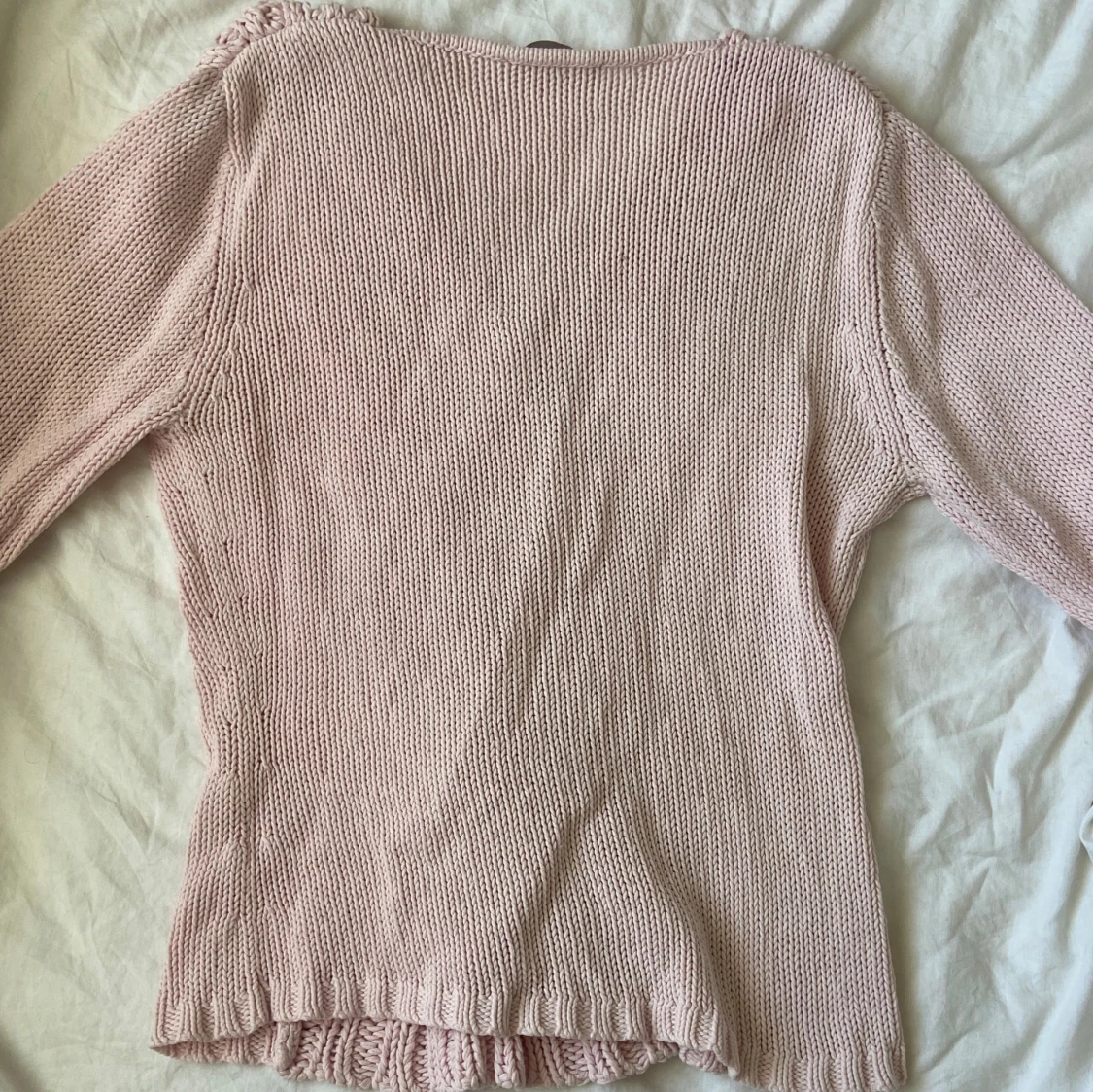 Superfin ljusrosa stickad tröja perfekt till hösten💕 Svårt att fånga färgen på bild men bild nr2 är mest likt. Två svaga fläckar (sista bilden) tycker inte att det förstör helhetsintrycket av tröjan💕hittar ingen storlek men skulle säga att den passar S/M💕