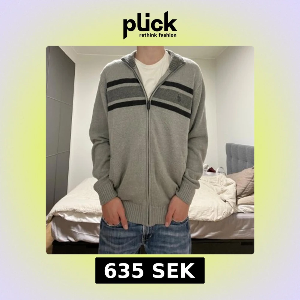 Tvär skön grå Us polo Cardigan i skönt material. Perfekt för hösten och Vintern. Om man är S sitter den lite oversized som du ser på bilden. Inget pris är hugget i sten.