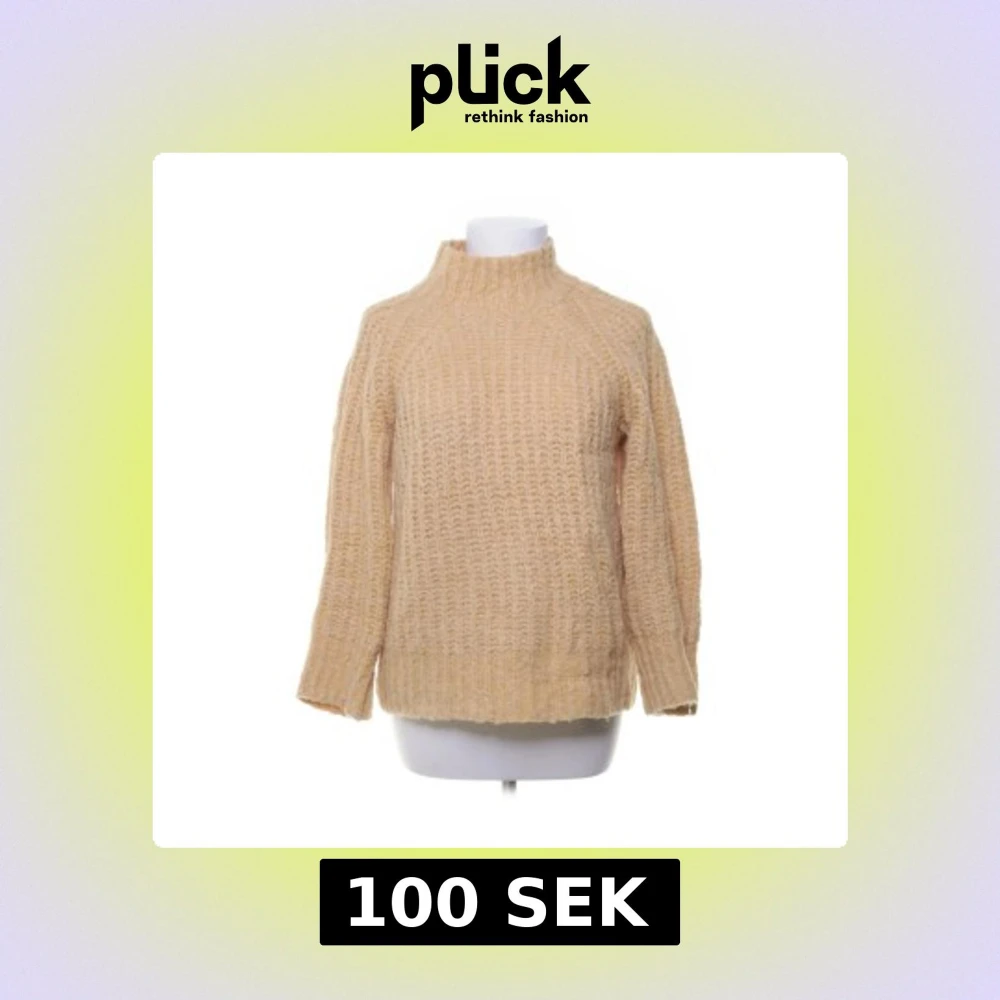Mysig gul stickad tröja med hög krage och långärmad modell. Tröjan har en chunky struktur och är perfekt för kyliga dagar. Den har en avslappnad passform och ribbade detaljer vid ärmslut och nederkant.
