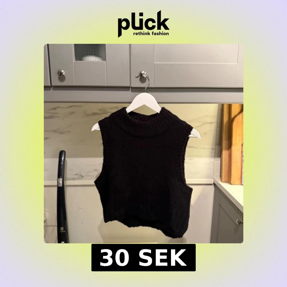 Svart stickad väst med grov ribbstickad hög krage och ärmlösa kanter. Modellen är croppad och har en loose passform. Den är från VILA.