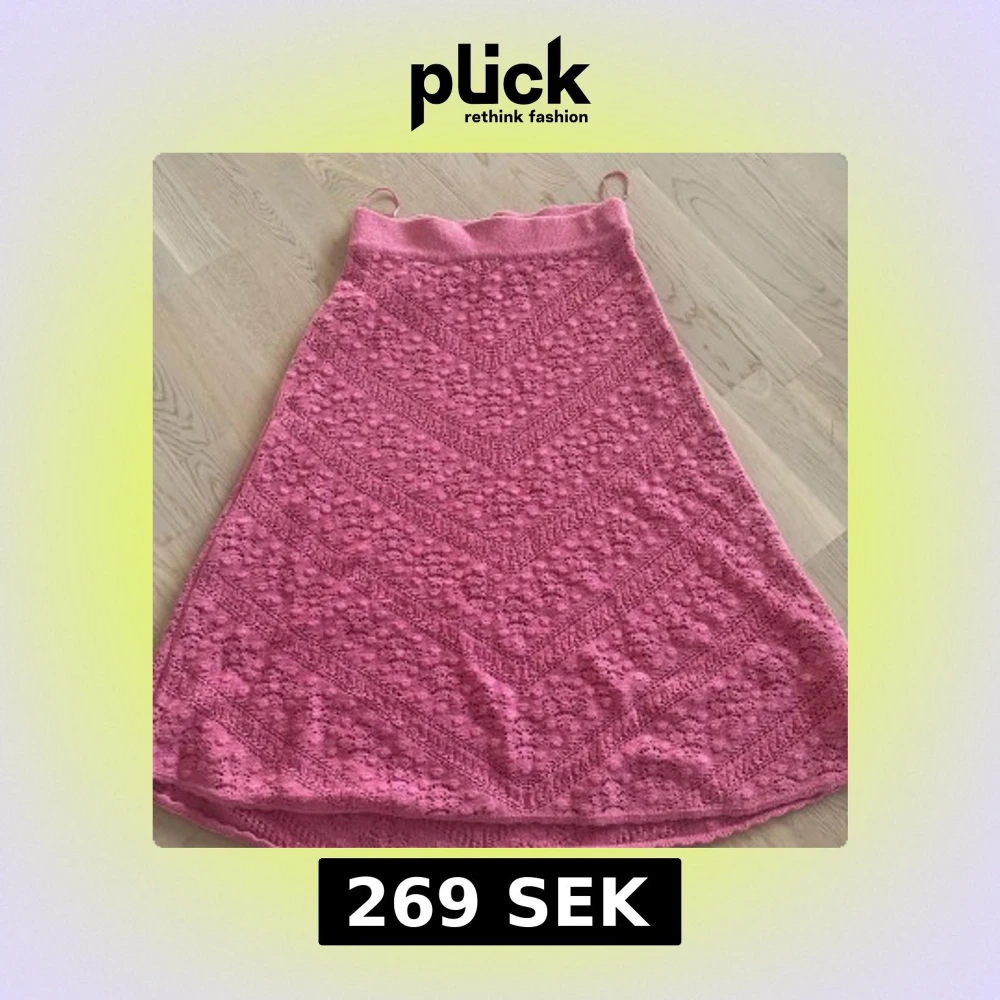 Supersöt rosa midikjol från Indiska i stickad bomull med snyggt hålmönster och bred resår i midjan. Kjolen har en lätt utsvängd form och känns både luftig och trendig. Perfekt för dig som gillar färg och vill ha något unikt i garderoben.