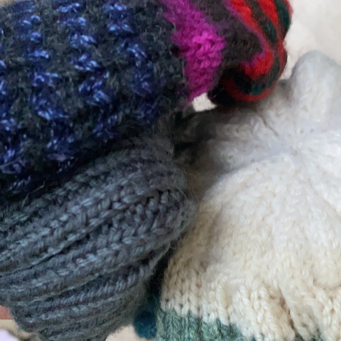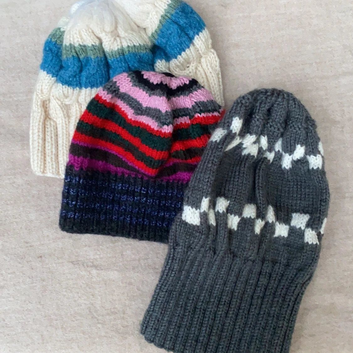 Beige, blå gröna och rosa röda är lite mindre (passar till mindre huvuden eller barn) den gråa är mer till vuxna. Alla är otroligt stretchiga, värmegivande och dessutom handgjorda med mycket kärlek och ger inte den ”stickiga” känslan mot huden 10 för alla
