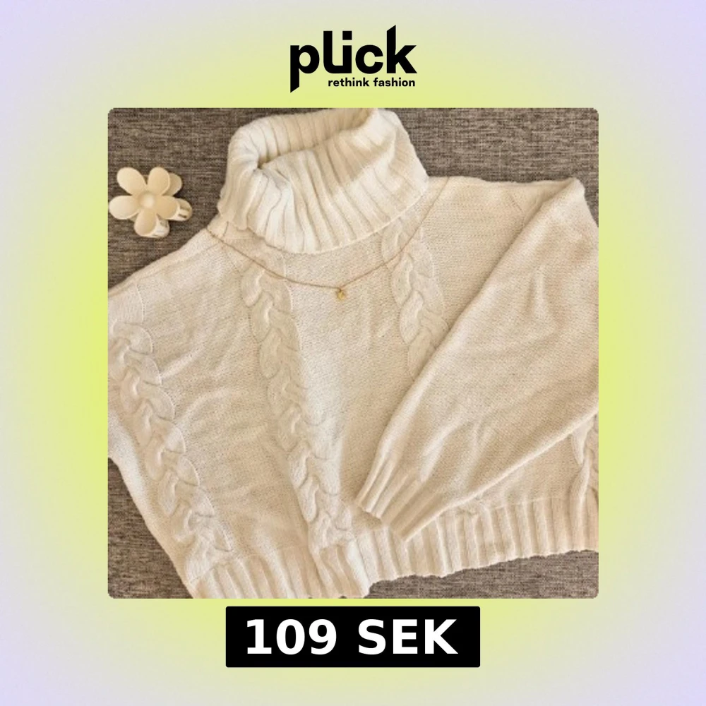 Stickad tröja med turtleneck och ett fint flätat mönster! 🫶