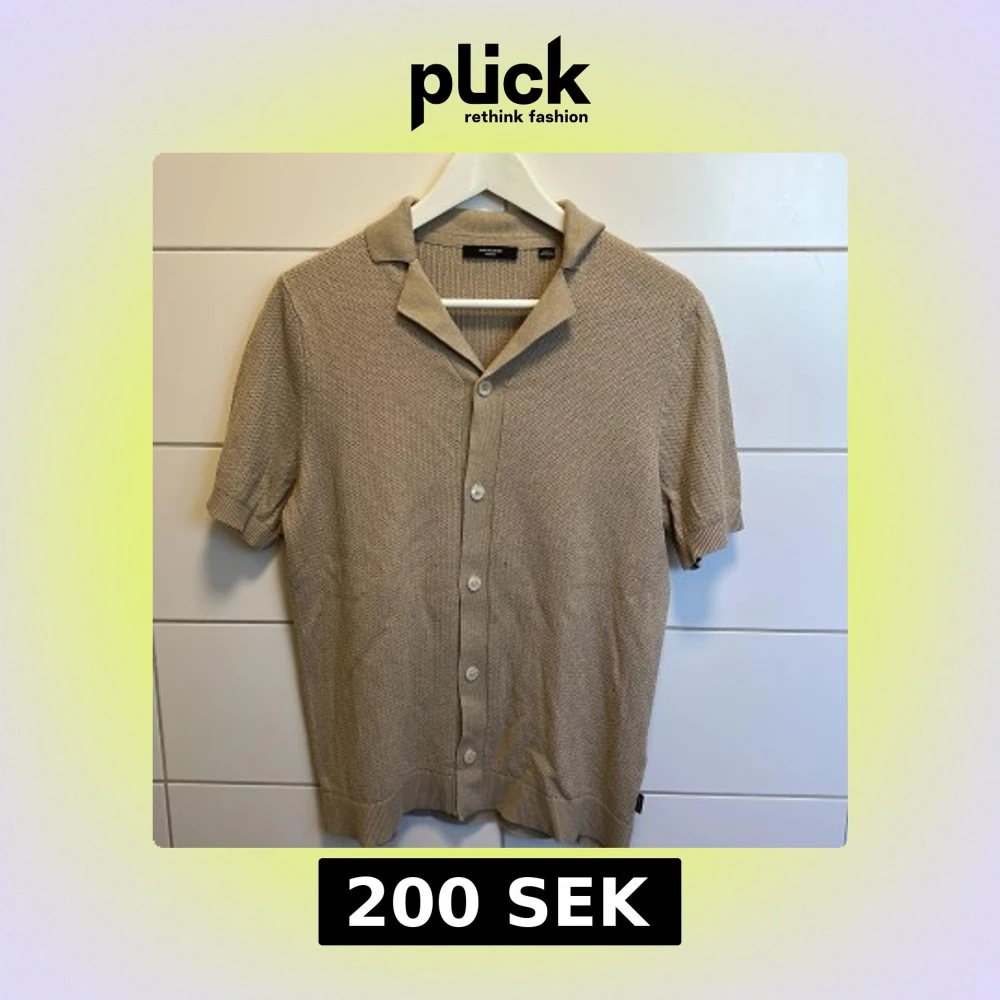Snygg beige stickad kofta från Jack & Jones Premium med kort ärm och klassisk krage. Koftan har knappar hela vägen framtill och ett diskret, strukturerat mönster i materialet. Perfekt för dig som gillar en stilren och chill look.