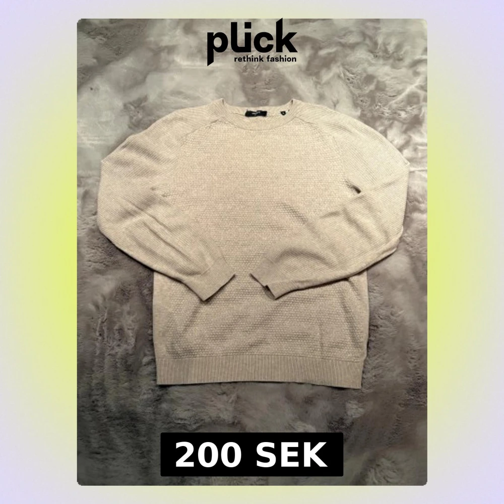 Det är en grå stickad Jack and Jones tröja. Det är storlek S och passar någon runt 170-175