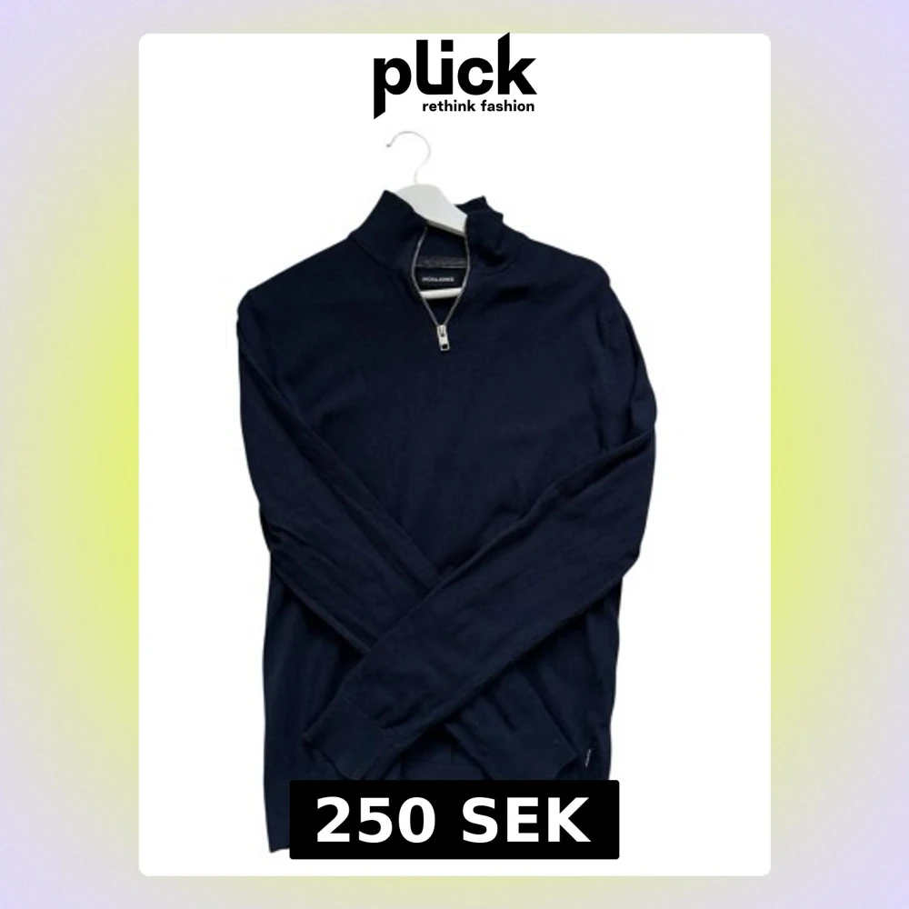 Mörkblå stickad tröja från Jack & Jones med halv dragkedja och hög krage. Tröjan har långa ärmar och ribbade muddar vid ärmslut och nederkant. Perfekt för lager på lager och enkel att matcha med olika outfits. Passar 165/175cm. Pris kan diskuteras. Skriv vid frågor eller funderingar