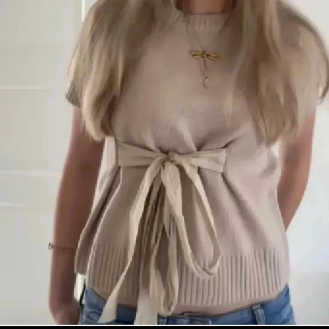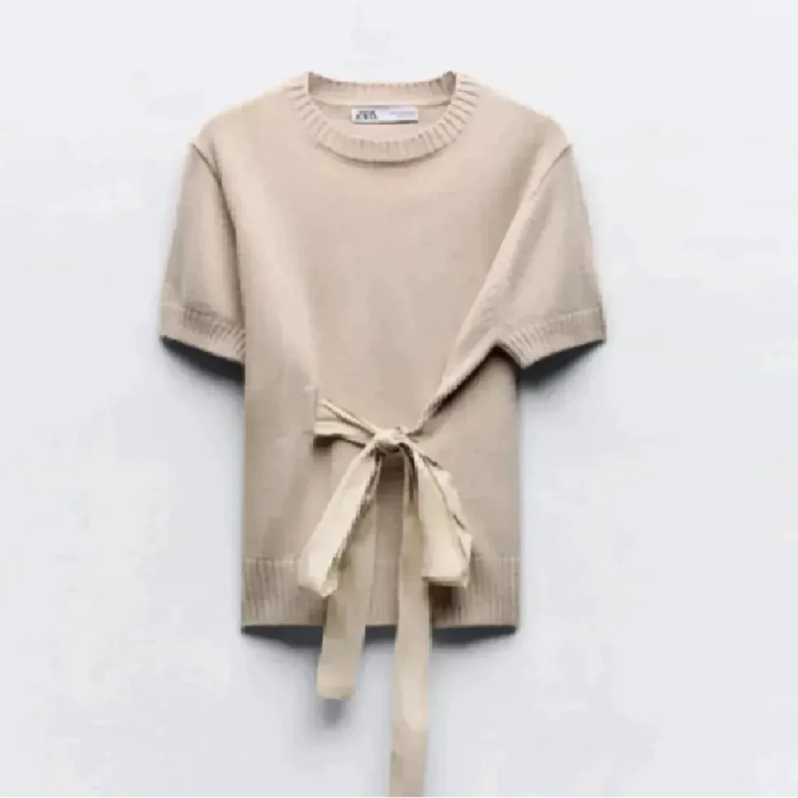 Superfin trendig beige stickad topp från Zara med korta ärmar och snygg knytning i midjan. Ribbad kant vid hals, ärmslut och nederkant. Perfekt för dig som gillar en clean och trendig look. Slutsåld överallt och väldigt eftertraktad! Skriv vid funderingar💕💕