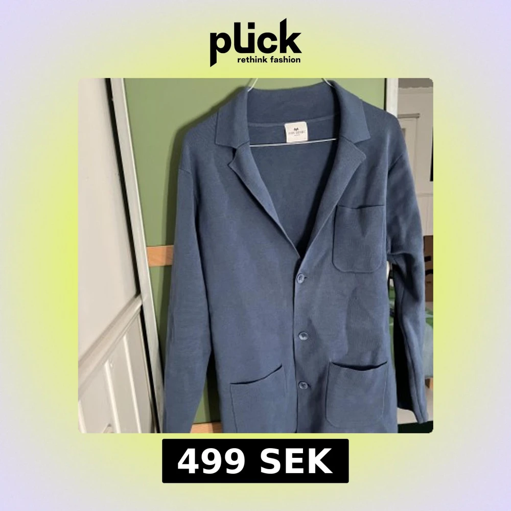 Stickad kavaj John henric, fin ljusblå färg, säljs inte längre. Storlek S men sitter som S-M