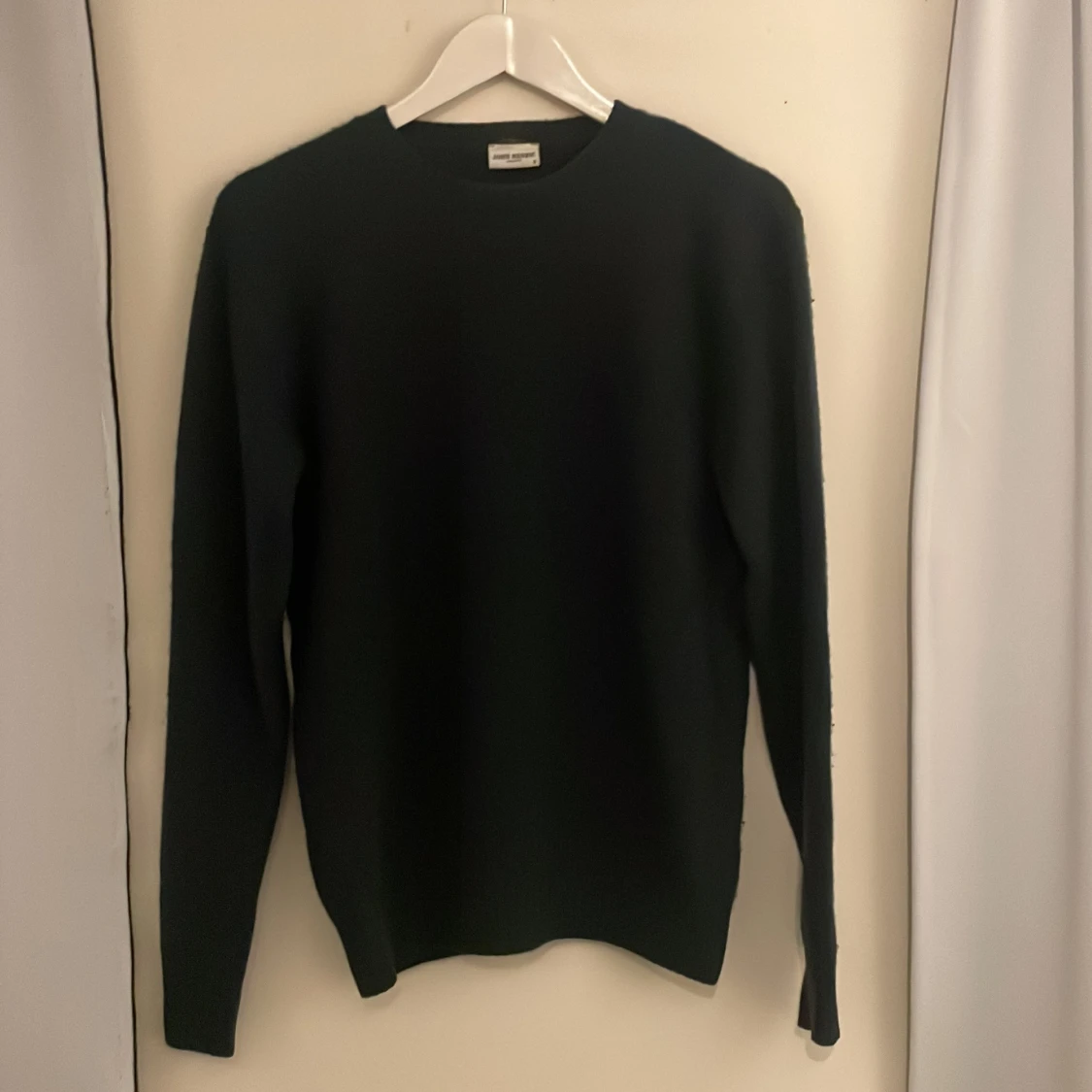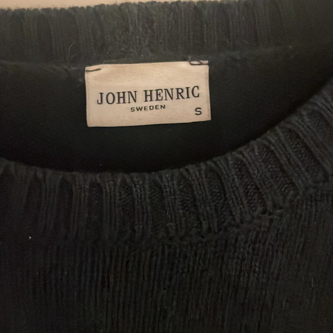 Säljer min Stickade tröja i ull och kashmirmix från John Henric. Bra skick förutom ett litet slitage på högra armbågen (se bild 3). Nypris 1499kr Bara höra av er vid frågor!