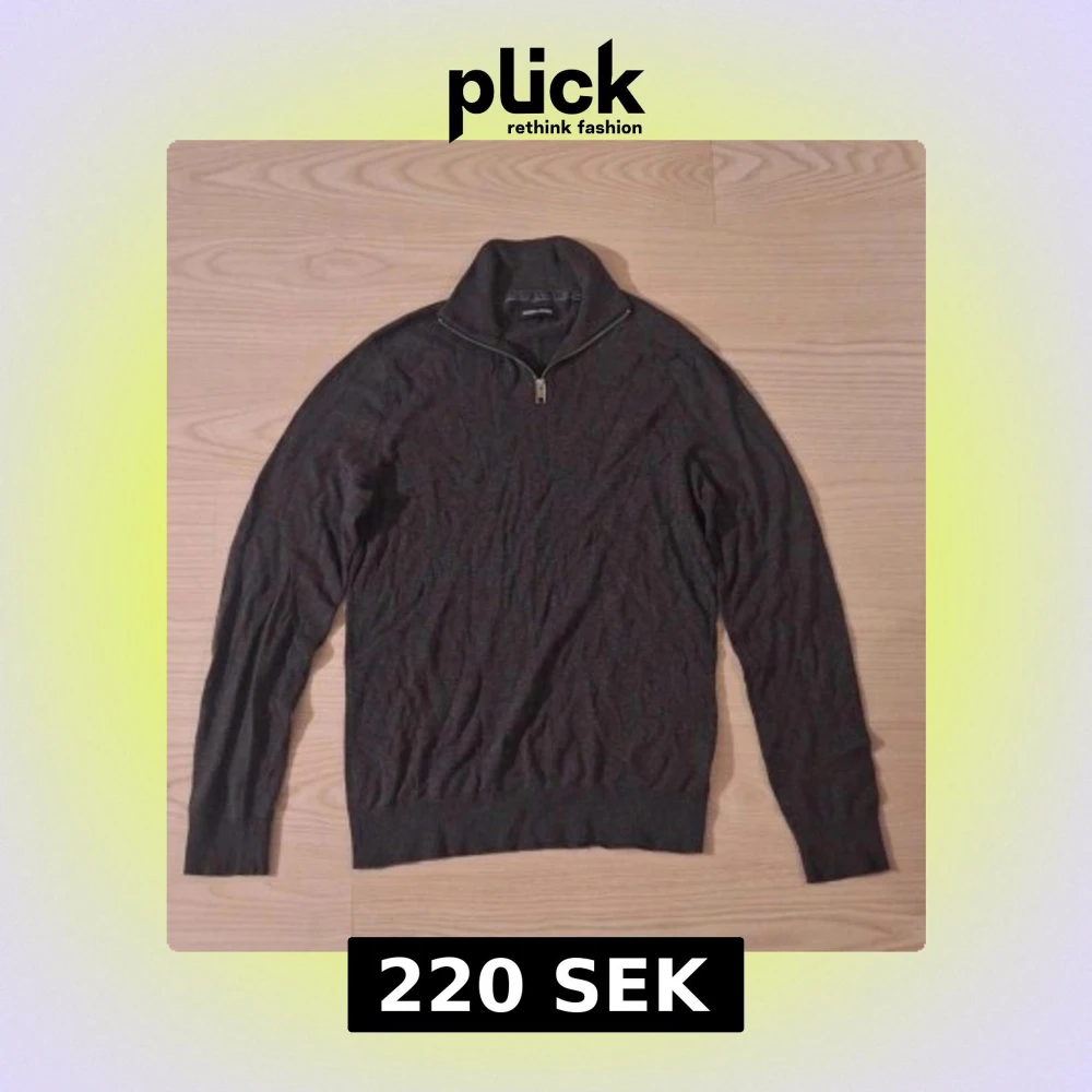 Snygg mörkgrå långärmad tröja från Jack & Jones med half zip-dragkedja i halsen. Tröjan har ribbade muddar vid ärmslut och nederkant, och är gjord i mjukt stickat material. 200 kr.