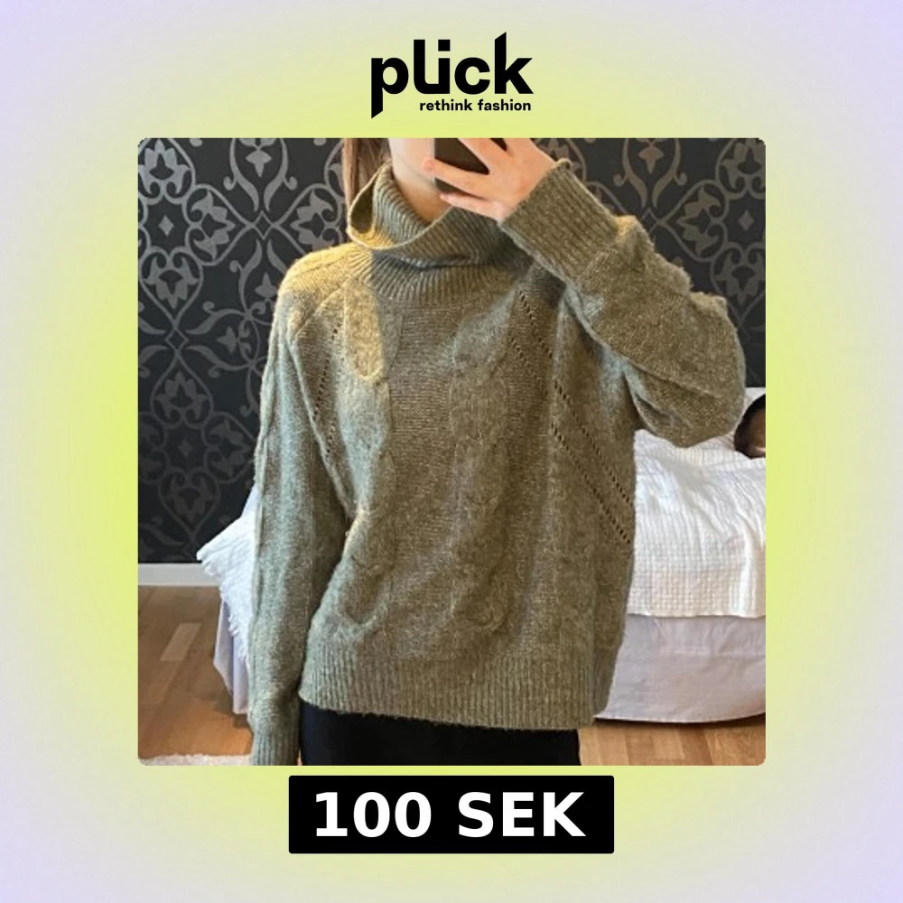 Mysig olivgrön stickad polotröja med kabelstickat mönster💚
