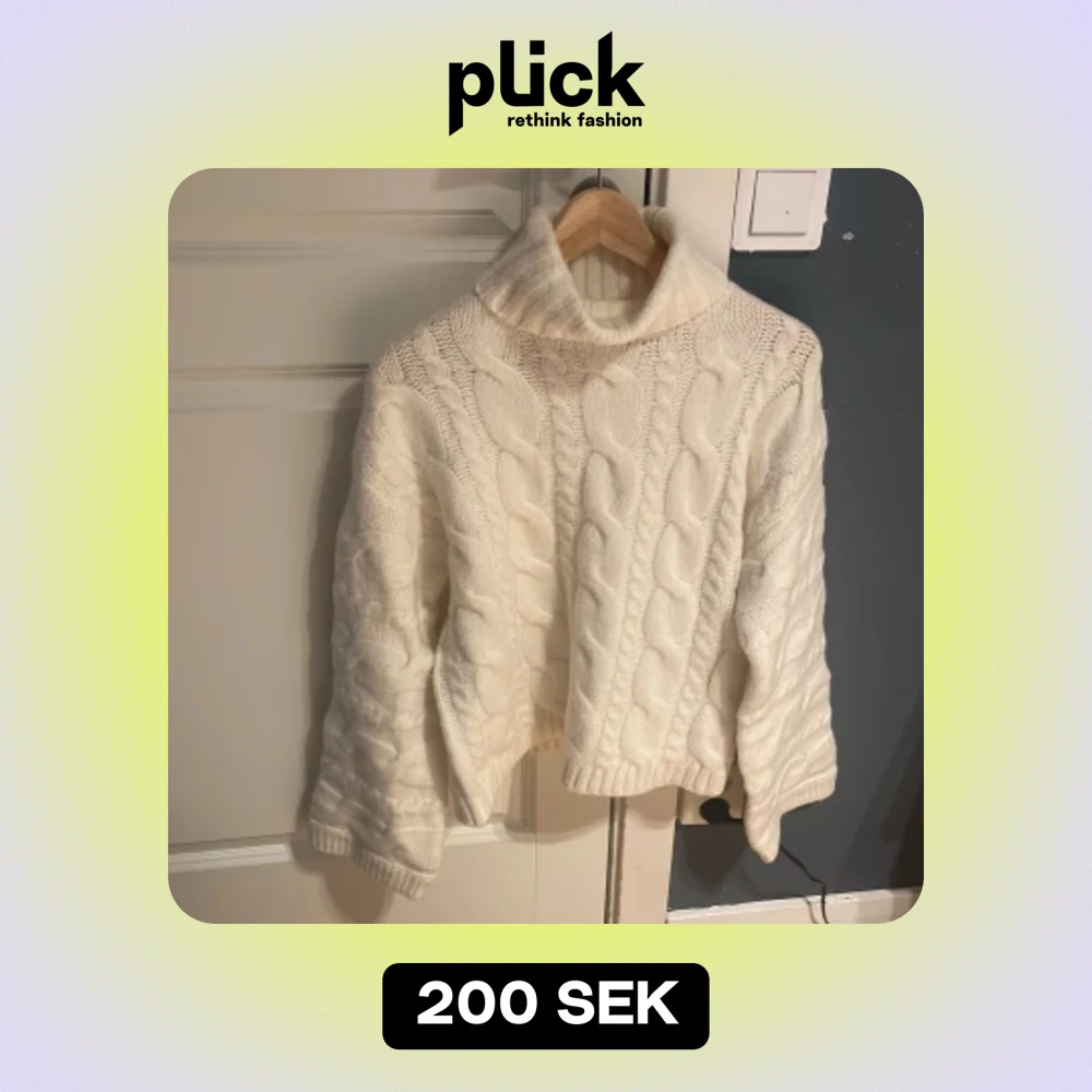 En varm och mysig vit kabelstickad polotröja från BikBok. Aldrig använd.
