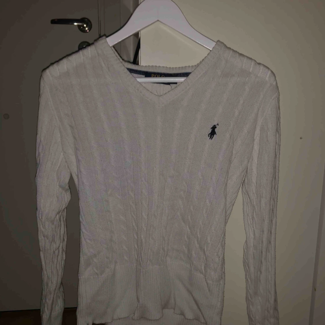 En vit kabelstickad tröja från Ralph lauren! Nästan helt oanvänd. Den är i storlek M men jag skulle säga att den är XS/S.
