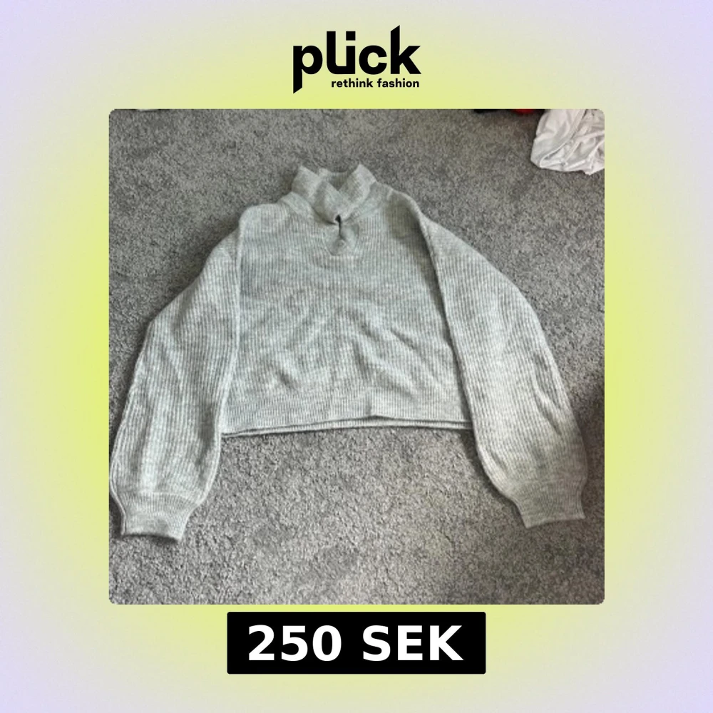 Mysig grå polotröja från Kappahl i ribbstickat material. Tröjan har en hög krage och långa ärmar med breda muddar. Perfekt för kyliga dagar och enkel att matcha med jeans eller kjol.